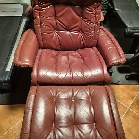 Pen stressless stol, noen år gammel, men hel og pen, ingen skader. Jeg mener at modellen heter Stockholm, men den ligner også mye på den som heter Oslo. Vil tro at stolen går bra ved siden av begge sofaer / salonger.