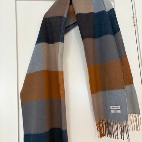 Skjerf med klassisk og tidløst mønster. Det har aldri vært lite brukt og fremstår som nytt. Skjerfet er mykt og varmt.