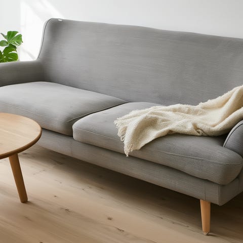 Trekket kan tas av og vaskes, noe som gjør sofaen praktisk og lett å holde ren. Sofaen er godt vedlikeholdt og har mye bruk igjen.