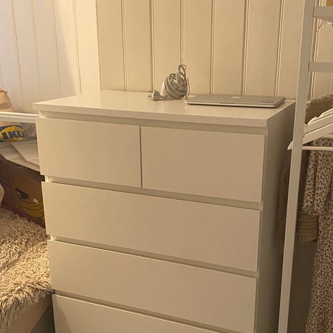 Malm kommode med 6 skuffer fra IKEA. Relativt ny og fortsatt hvit og ikke gulnet.