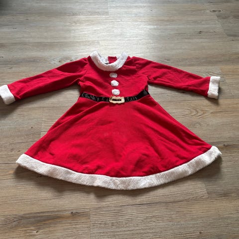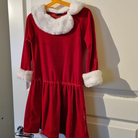 Nydelig rød velur nissekjole med avtakbare fuskepelskanter