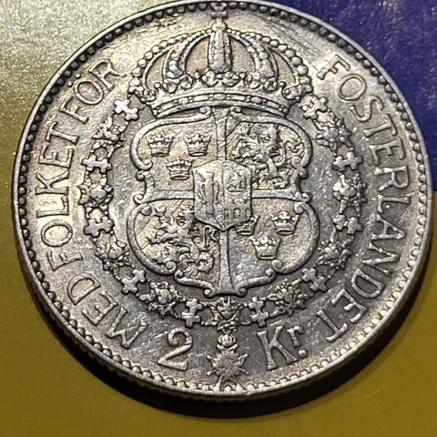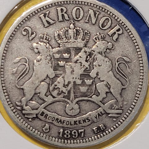 2 kronor Sverige 1907, *80 % Sølv*