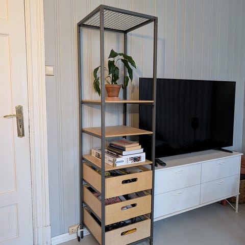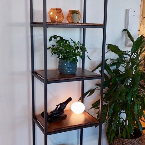 Hyllen har et grovt og røft utseende. Pen utførelse og er unik på grunn av naturlig variasjon i treverket. Slitesterkt treplate gir denne stige hyllen lang levetid. Det kan passe veldig fint både i en stue, entré, bad, på et soverom eller kjøkkenet. De åpne hyllene gir enkelt oversikt og er enkle å nå. Ingen fare for riper, småskader eller andre merker da hyllen har ett «rufsete» utseende