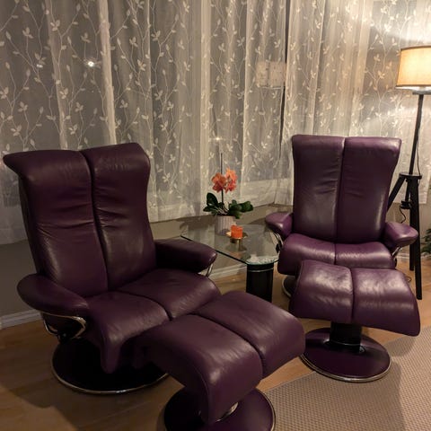 2 stk stressless stoler med bevegelig sete og rygg (høy rygg versjon).( Ordinær pris i dag ca 25 tusen pr.stk).