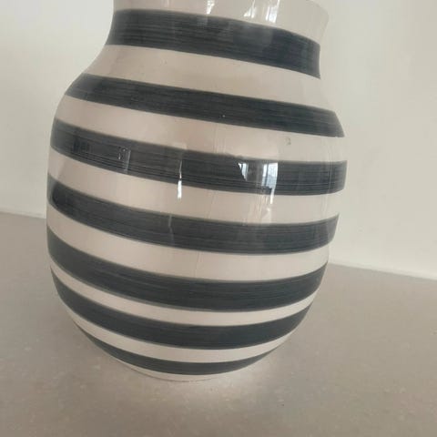 Kähler Omaggio vase med svart og hvite striper. Dekorativt element laget av keramikk, egnet for innendørs bruk.