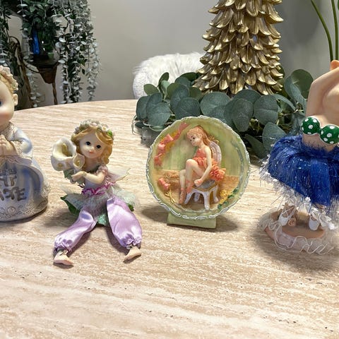 Porcelainsfigur av en dame iført blå kjole med detaljer i hvitt og gull. Figuren viser en kvinne i historisk antrekk med dekorative elementer.