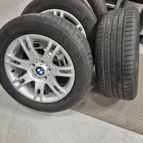 Selger bmw sommer dekk komplett med hjul, 2 er fine dekk på og 2 er slitte, men veldig fine original felger.