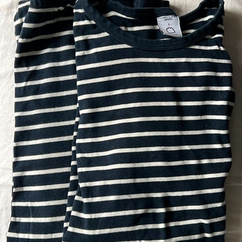 Klassisk, stripete PoP pysjamas i 100% bomull, kjøpt ny i 2025 og glemt i et skap, merkelappene henger fortsatt på. Ingen feil/ mangler.
