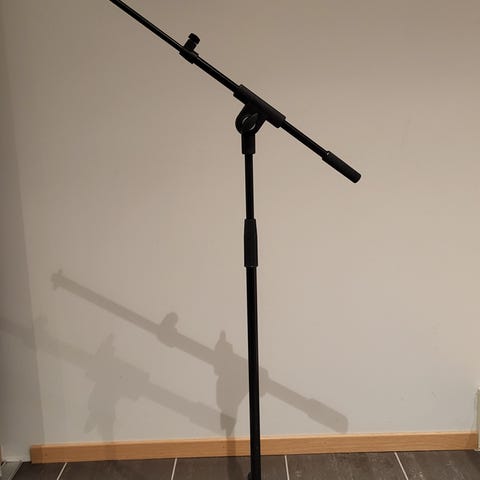 3 robuste mikrofonstativ selges samlet. Jeg kjøpte stativene brukt for noen år tilbake, og til tross for et slitent utseende har de holdt veldig godt. Dette er tunge, solide stativer som tåler tung vekt og røff bruk. Stativene egner seg godt til overheads siden de kan bli veldig høy uten å vingle.