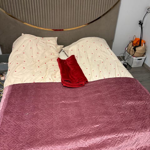 Nydelig seng m/madrass + sengegavl + to nattbord