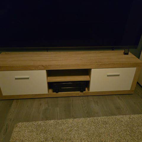 Hvit, høyglanset TV-benk i svært god stand.