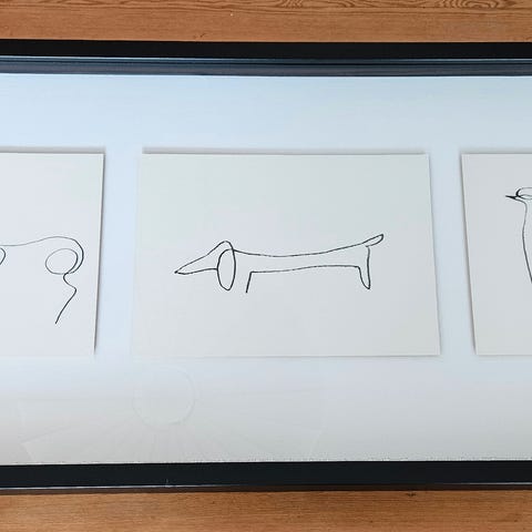 Det er innrammet i en dekorativ ramme, utvendig mål 59 x 50 cm.