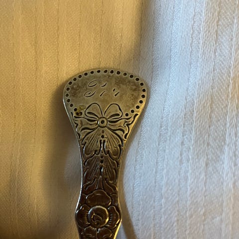 Gammel sølvplett gaffel i "Finse" mønster selges.