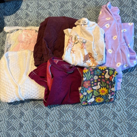 Klespakke til jente med 11 pent brukte plagg. Ull, fleece, bomull og bambus.