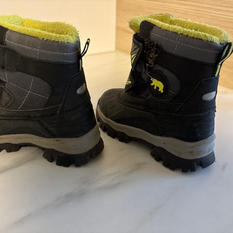 God vinterstøvler i størrelse 25 med grøn rød blinke elektrisk i såle. Det fungere fremdeles. Støvlene har isolerende fôr for varme. Egnet for barn til bruk i kalde værforhold. Kan sendes.
