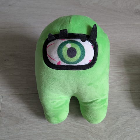 Among Us mykt barneleketøy i rød farge. Passer for barn og kan brukes som kosedyr eller dekorasjon.
