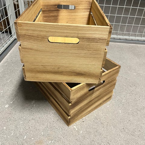 Trekasse malt sort, med hjul.