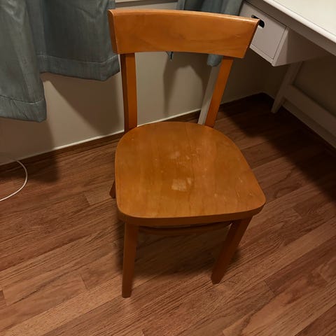 To stk stoler gis bort. Knekt øverst i stolryggen, synlig på bilde.