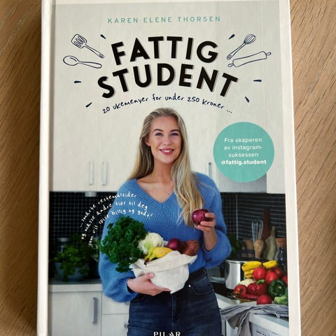 Karen Elche Thorkler Fattig Student bok med oppskrifter og tips for studenter med lavt budsjett. Inneholder over mange retter tilpasset studielivet.