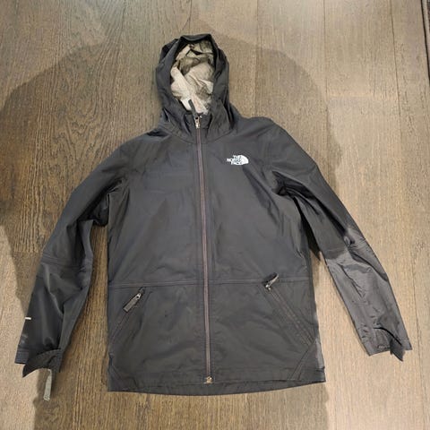 Ubrukt regnjakke selges. Det står str 10/12 men syntes den virker liten i str.