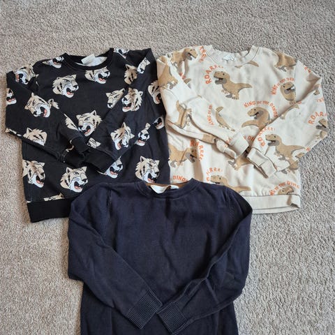 Hettejakke 122/128. Brukt 1 gang, satt fast erm i glidelås, liten anmerkning i kant.