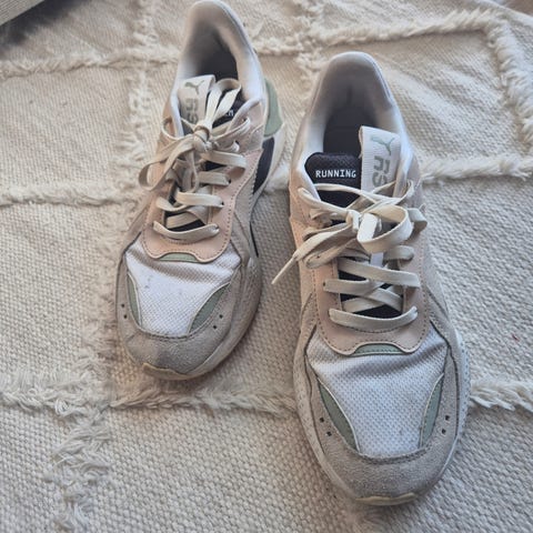 Puma sneakers joggesko i størrelse 39. Sålen er 25 cm og passer derfor også godt størrelse 39,5 eller 40.