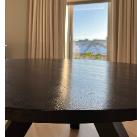 Pent brukt rundt spisebord, fått en stripe i treverket ellers pent med minimal bruksslitasje. Se bilder.