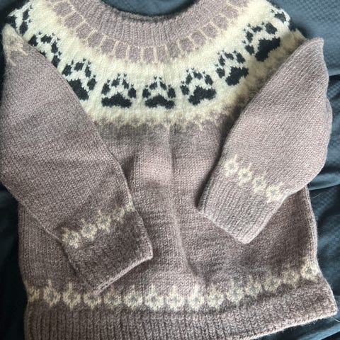 Den hadde fått en tråd kuttet av på ryggen så den er lappet pent sammen og synes nesten ikke(bilde)