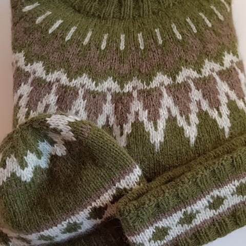 Strikket I isager spinni og isager mohair.