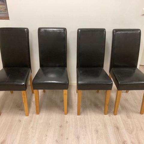 Selger fire spisestoler da vi har byttet hele spisestuen. (Fjerde stolen er ikke avbildet da den står oppe i loftstue).