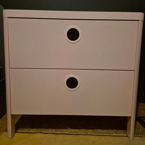 IKEA busunge barnekommode i rosa med to skuffer. Pent brukt, røyk- og dyrefritt hjem. Selges kr 300. Må hentes på Tiller.