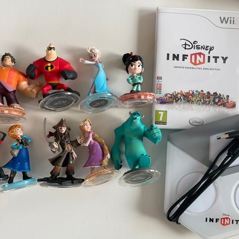 Disney infinity tilbehør til Wii selges da vi ikke har Wii lenger. En del år siden dette har vært i bruk. Av den grunn vet vi ikke om alt fungerer som det skal. Siste gang det ble brukt så virket det, men med tanke på at vi ikke har Wii lenger, så får vi ikke testet det nå og sjekket at alt virker.