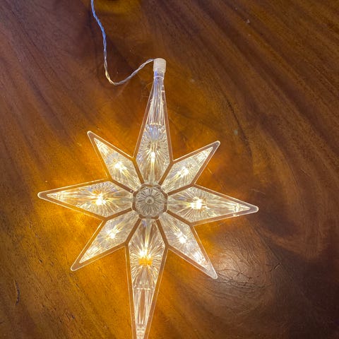 Går på AA-batteri som gjør den veldig fin i vinduet siden du slipper synlige ledninger.