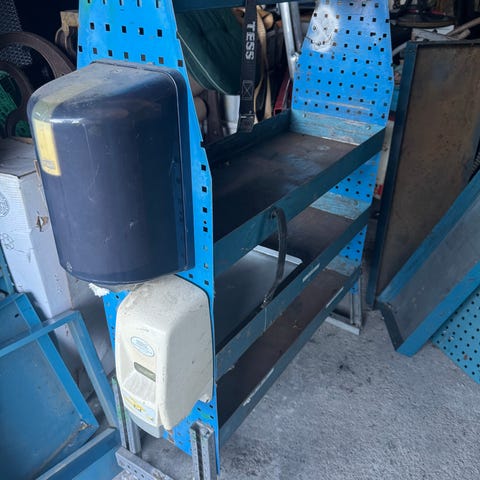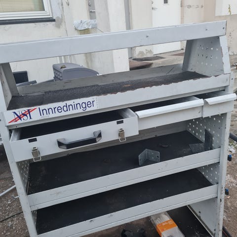 Bott verktøyskap med flere skuffer og oppbevaringsrom. Skapet har en robust konstruksjon i metall med grå og sølvfarget finish. Designet for organisering og lagring av verktøy og utstyr i arbeidsmiljøer.