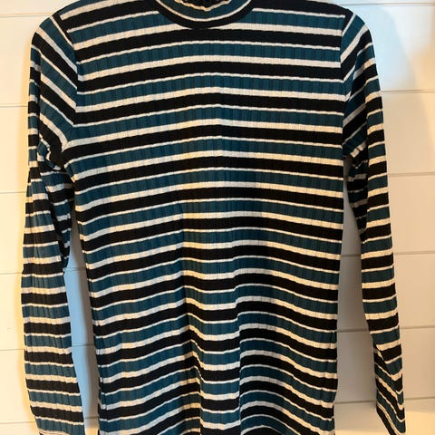 Usikker på materiale da lappen inni er vekk. Men er en god genser som er litt vid så den passer en L. Noe nupper, men eller hel og fin.