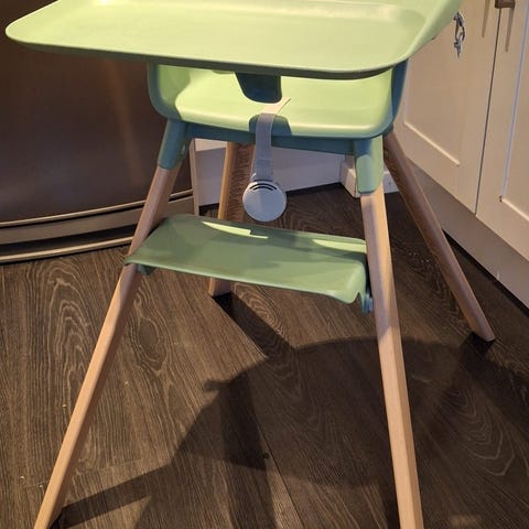 Stokke clikk høy barnestol i korall farge. Pent brukt, som ny.