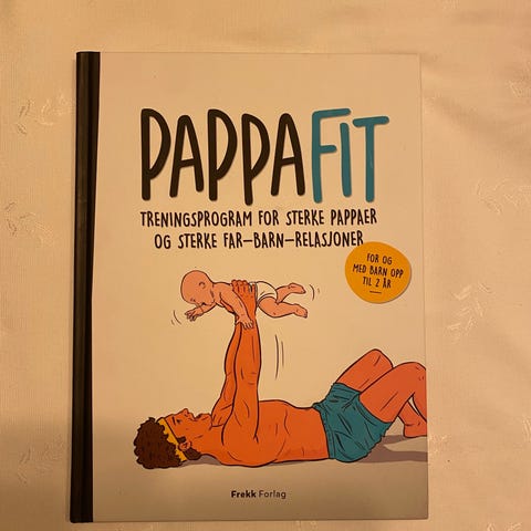 Pappafit treningsprogram bok med fokus på styrke for pappaer og forbedring av far-barn-relasjoner. Inneholder øvelser og veiledning for trening hjemme.