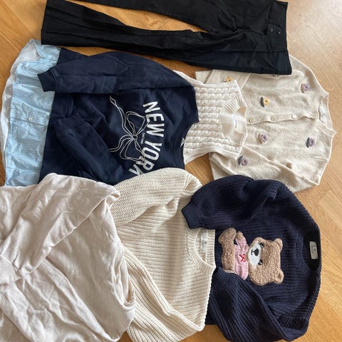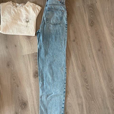 Gina Tricot barn jeans i blå farge, størrelse 158, designet for jenter. Jeansene har lommer både foran og bak, med en klassisk denimstil.Det kan selges seperat eller i en pakke, prisen er pakke pris, men man kan bli enig om en pris for seperat evt.😊