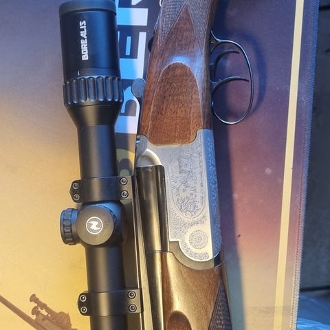 Diamond Lux kombi i kal 6,5x55 og 12/76. Veldig pent treverk og justerbar kolbekam. En avtrekker med løpsvelger. Mak hurtigmontasje med 30mm ringer.
