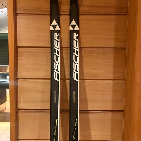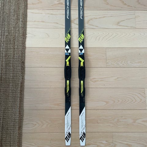 Pent brukte ski hvor bindinger og undersiden er pent brukt.