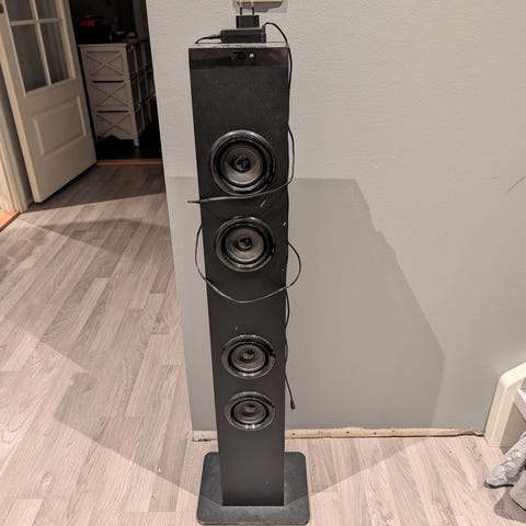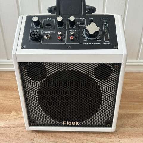 Veldig lett høytaler for barn med mikrofon. Den har også lys på hele rundt høytaleren. Den er ikke brukt, kanskje testen en gang.