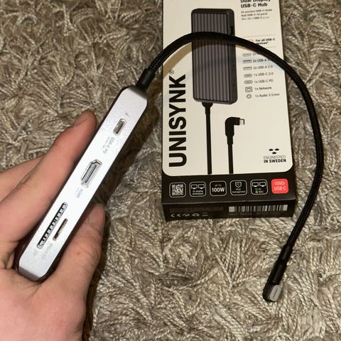 Selger en ubrukt 8-i-1 USB-C hub/adapter. Dette er en alt-i-ett-løsning som er perfekt for MacBook, laptop eller nettbrett/mobil med USB-C-port.