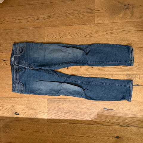 Veldig pen og i god stand. Tynt stoff med små lyseblå striper