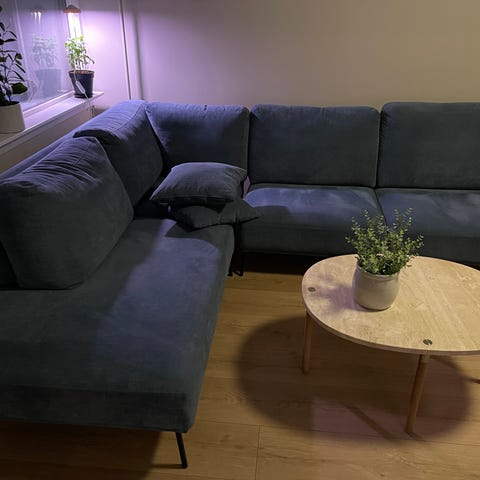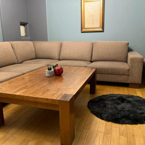 Romslig og komfortabel hjørnesofa fra SITS, modell Stella Set 5 Cosy Corner. Sofaen er brukt, men fortsatt fin og veldig god å sitte i. Stolen er mindre brukt.