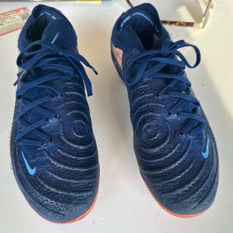 Adidas F50 fotballsko i lilla og gul farge. Skoene har knotter under sålen for bruk på gressbaner. Designet for fotballspillere, med snøring for justering av passform.