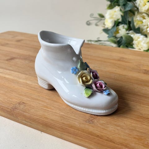 Vintage, sko, shoes, lady, vase, blomst, blomster, messing, gull farge.
