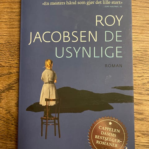 Roy Jacobsen De Usynlige er en roman. Boken har et omslag med en person som står på en stol og ser mot horisonten. Den er utgitt av Cappelen Damm. Romanen er en del av norsk litteratur.