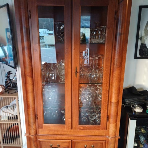 Pen skjenk med glasstopp og glasshylle selges rimelig