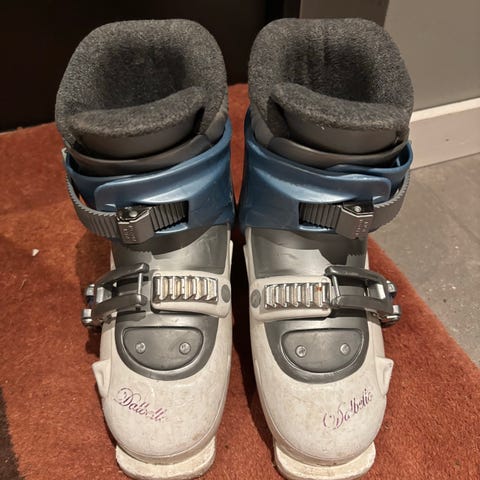 Hvite og rosa slalomsko med utvendig mål 255 mm.