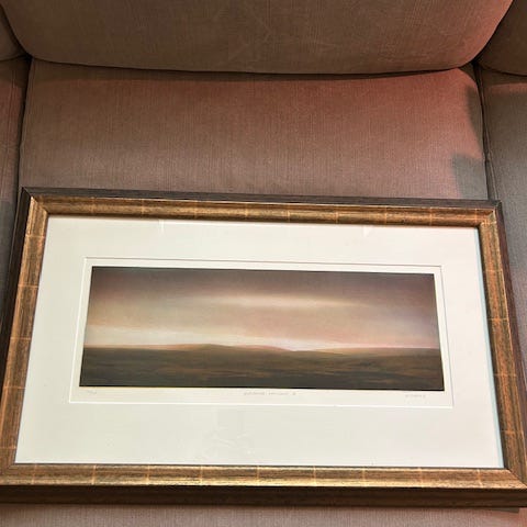 Terje Risberg Møte III kunsttrykk, nummer 15 av 35. Inkluderer signatur og nummerering. Innrammet med mørk ramme gjort av Krane galleri i Tromsø, se liten skrape på rammen. Kjøpt ca 2002, se mål kunst her: https://www.stortinget.no/no/Stortinget-og-demokratiet/Galleri/nettgalleri/?mid=STO.K.02534